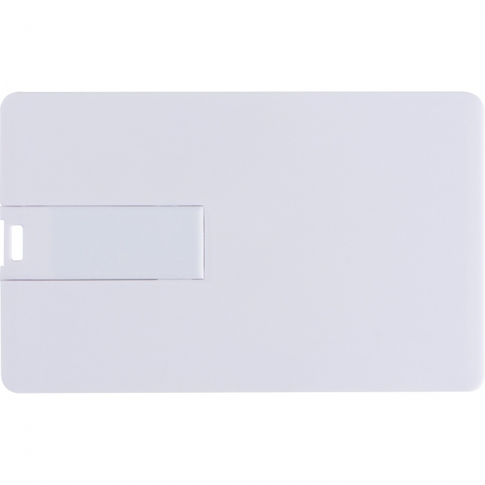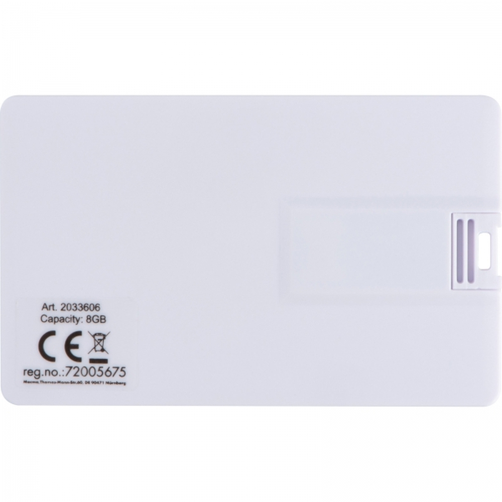 Plastikowy pendrive w kształcie karty kredytowej o pojemności 8GB.
