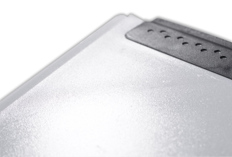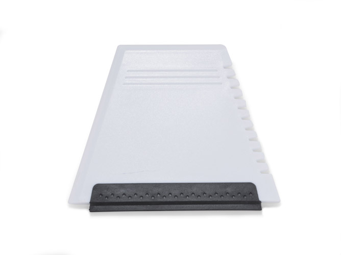 Skrobaczka do szyb z trzema końcówkami – płaską, ząbkowaną oraz gumową. Wykonana z tworzywa nietransparentnego.